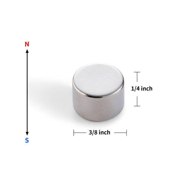 N52 Neodymium Cylindrical Magnets 3/8 x 3/8 inch