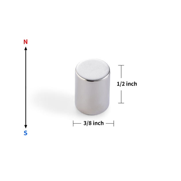 Rare Earth Cylinder Neodymium Magnets 3/8 x 1/2 inch