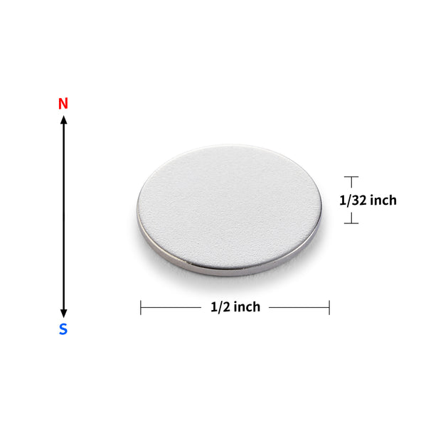 Thin Neodymium Rare Earth Disc Magnet 1/2 x 1/32 inch N42