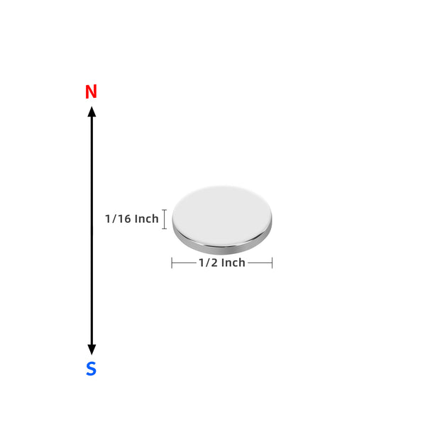 Rare Earth Neodymium Disk Magnets N45 1/2 in x 1/16 in