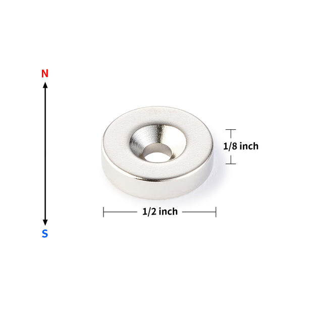 Neodymium Magnets 1/2 in x 1/8 in Disc w/Countersunk Hole Rare Earth