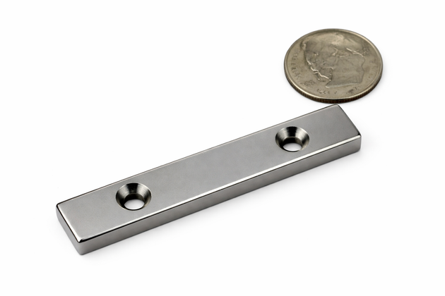 N48 Neodymium Magnets 3 in x 1/2 in x 1/4 in with 2 Countersunk Holes