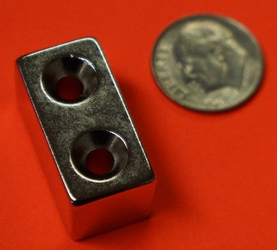 Neodymium Magnets 1 in x 1/2 in x 1/2 in w/2 Countersunk Holes NdFeB Block