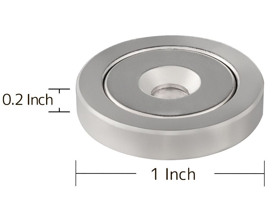 Neodymium Cup Magnets Size: 25.4 mm Diameter x 5 mm thick with 8.5x5 mm countersunk hole.